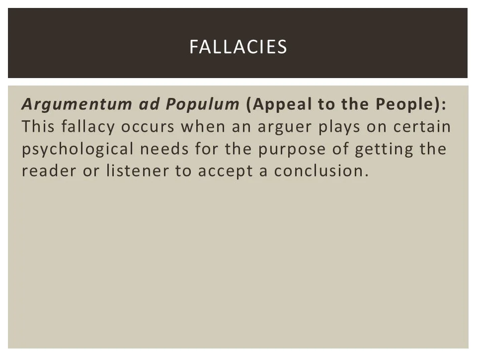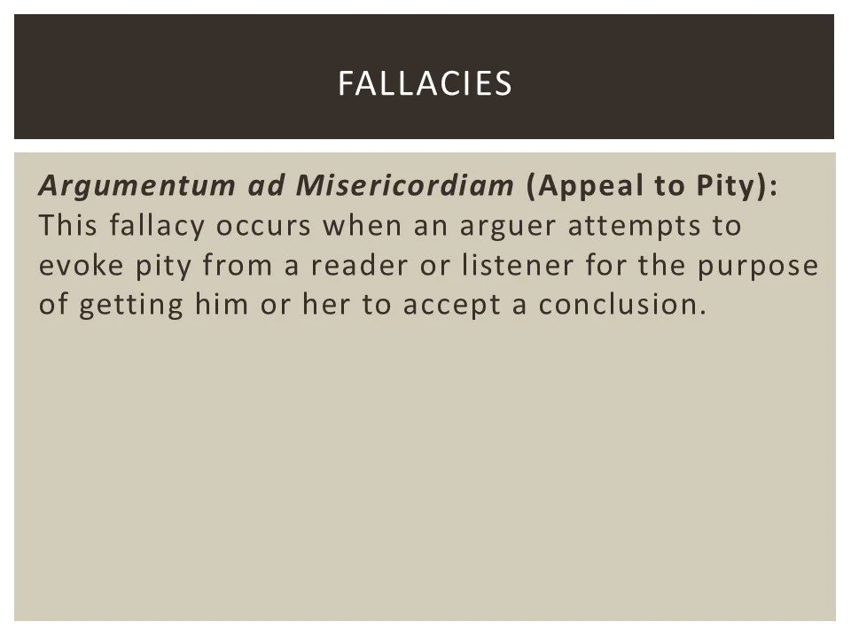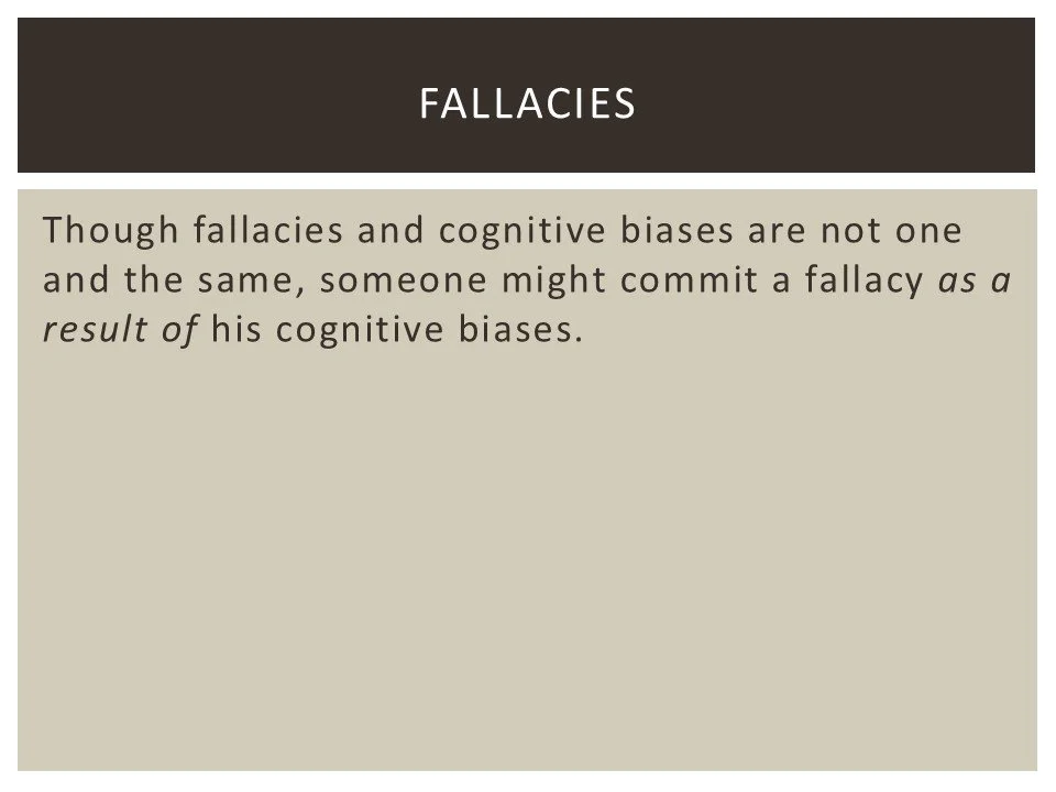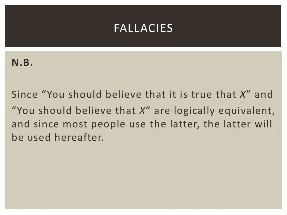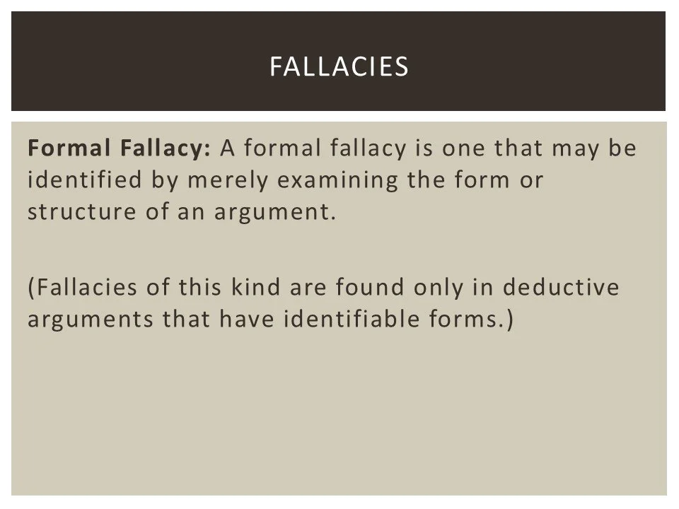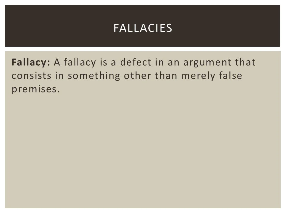 The following are excerpted from the set of PowerPoint slides on fallacies. They are representative of the substance and style of all of the PowerPoint slides that are screen-shared and discussed during the course. Discussions of the course’s PowerPoint slides include presenting arguments for positions on bioethical issues, analyzing the concepts presented therein, explaining the importance of said concepts, and more. Throughout these discussions, Professor Lovering encourages students to participate by sharing their questions, observations, insights, confusions, anecdotes, and anything else (that is topic-relevant) that comes to mind.